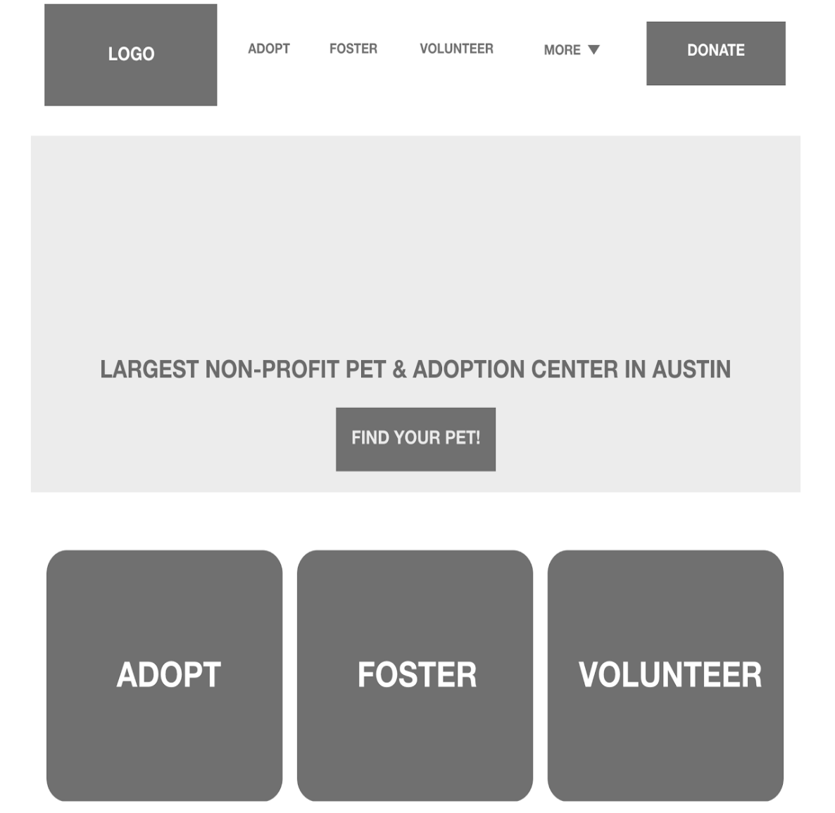 Our goals are to utilize our research methods and to interview with stakeholders to create a user-friendly website that is easy-to-use and clear to navigate. Design a Web and Mobile website that would appeal to people in Austin who want to access information quickly, such as: How to Volunteer, Adopt, Foster and Donate.