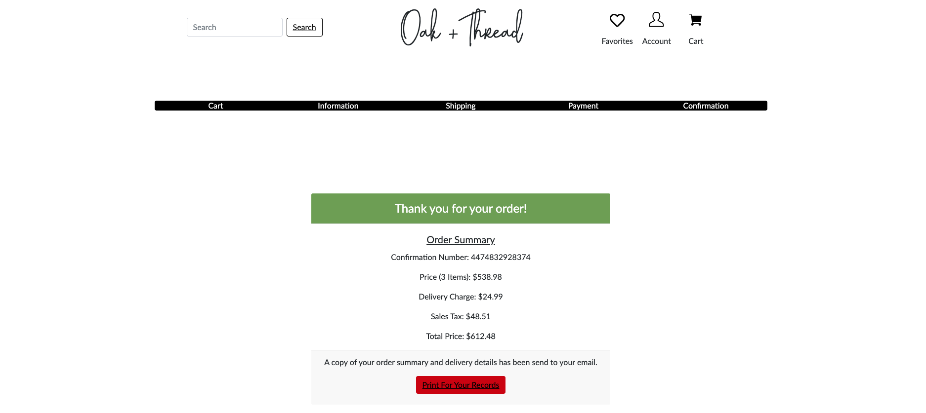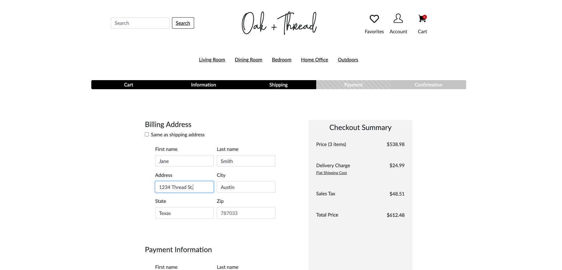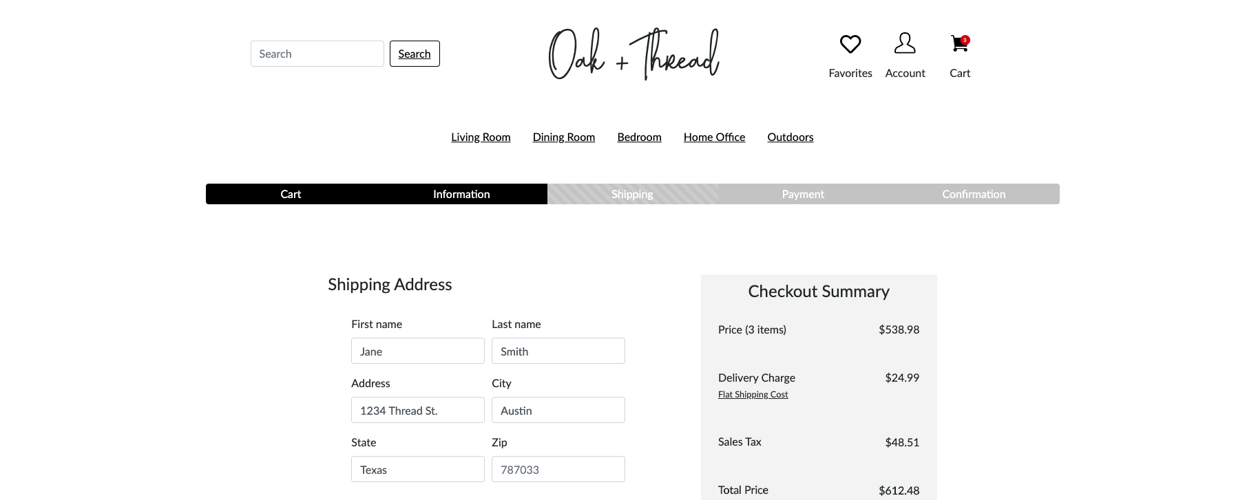 We believe that simplifying the sign-in, login, and checkout processes, and streamlining filtering and search flows for shoppers will motivate them to buy furniture from Oak+Thread.