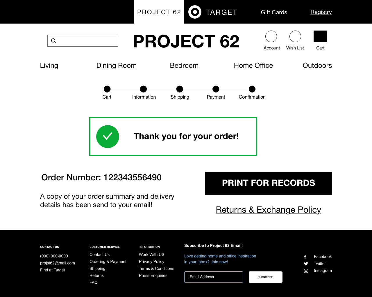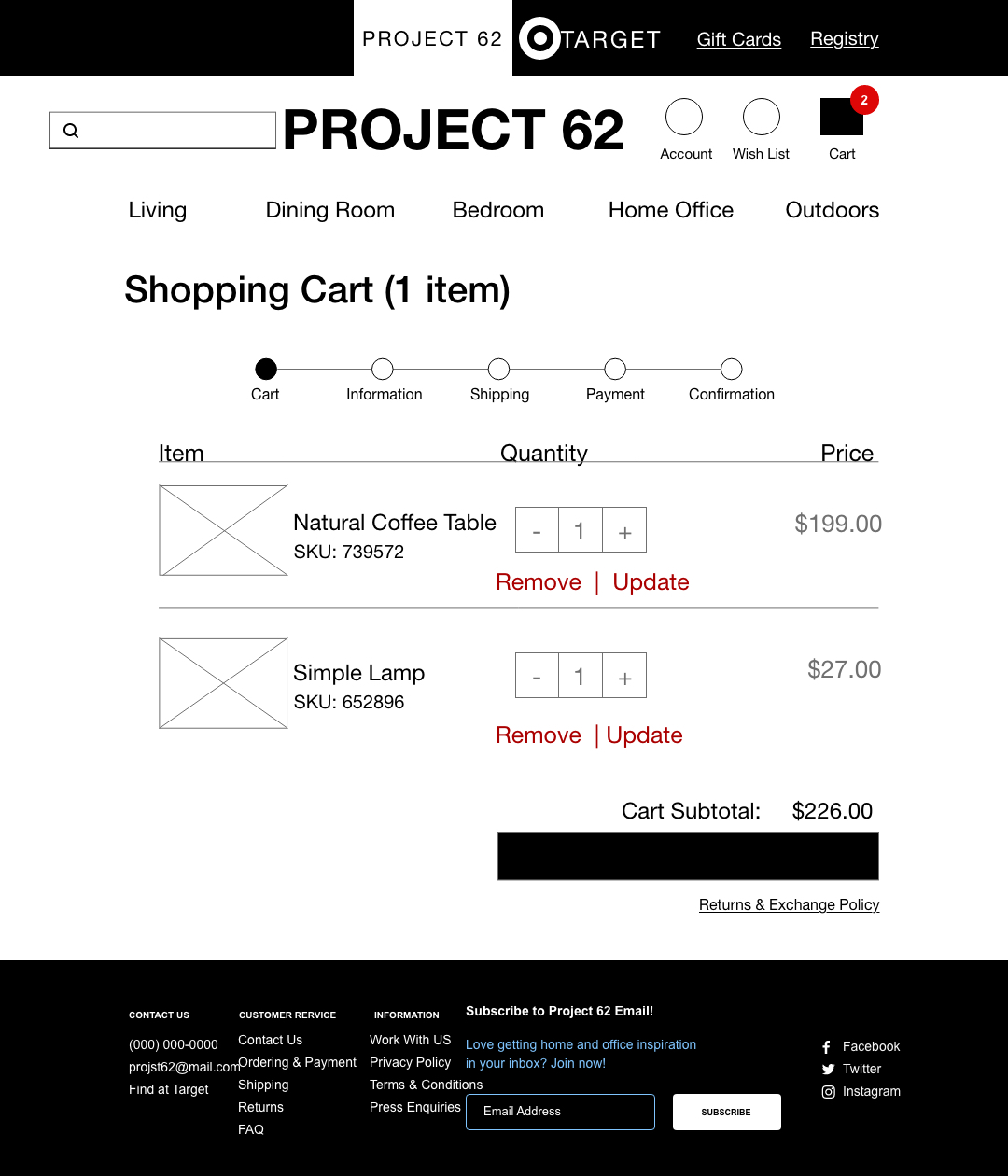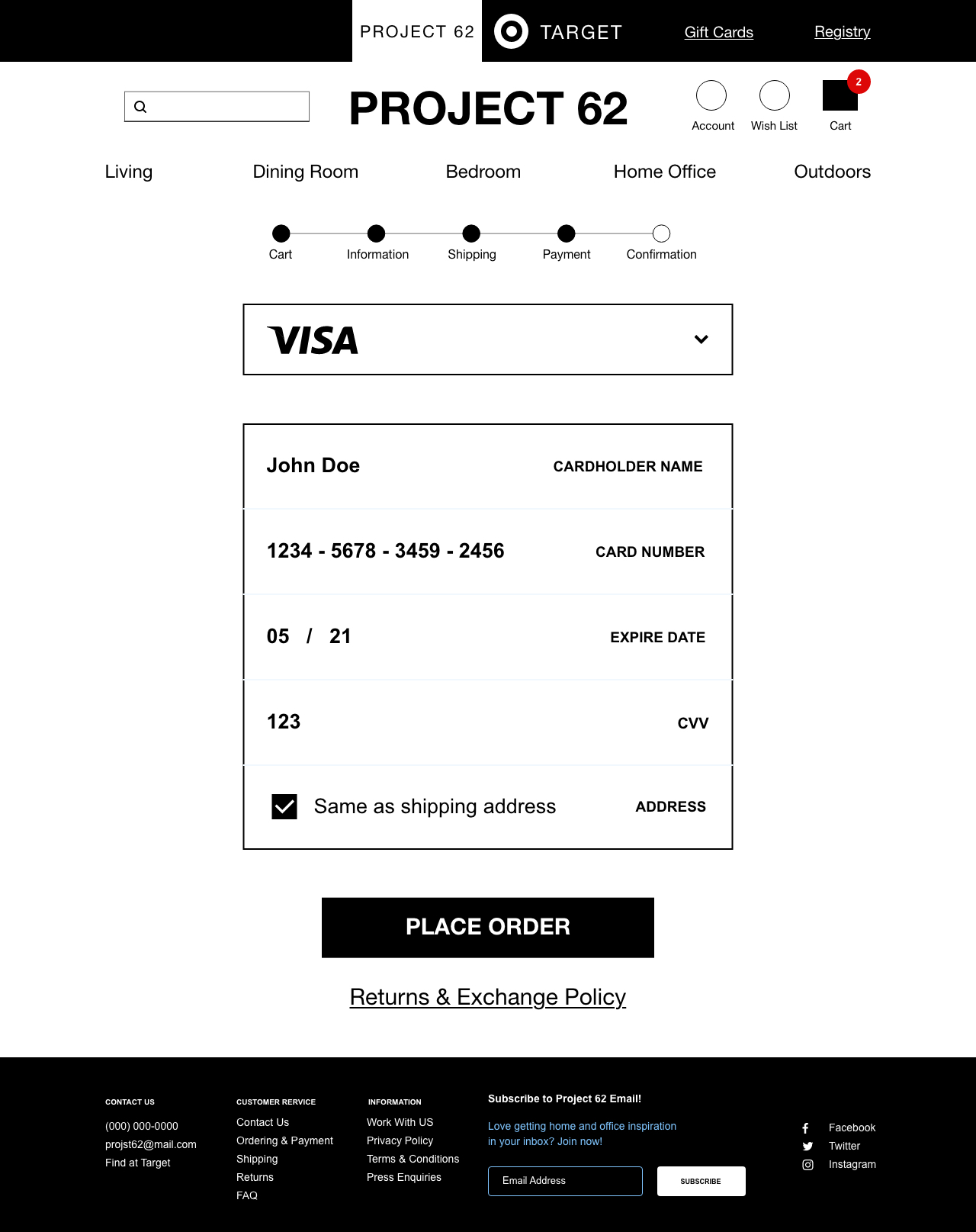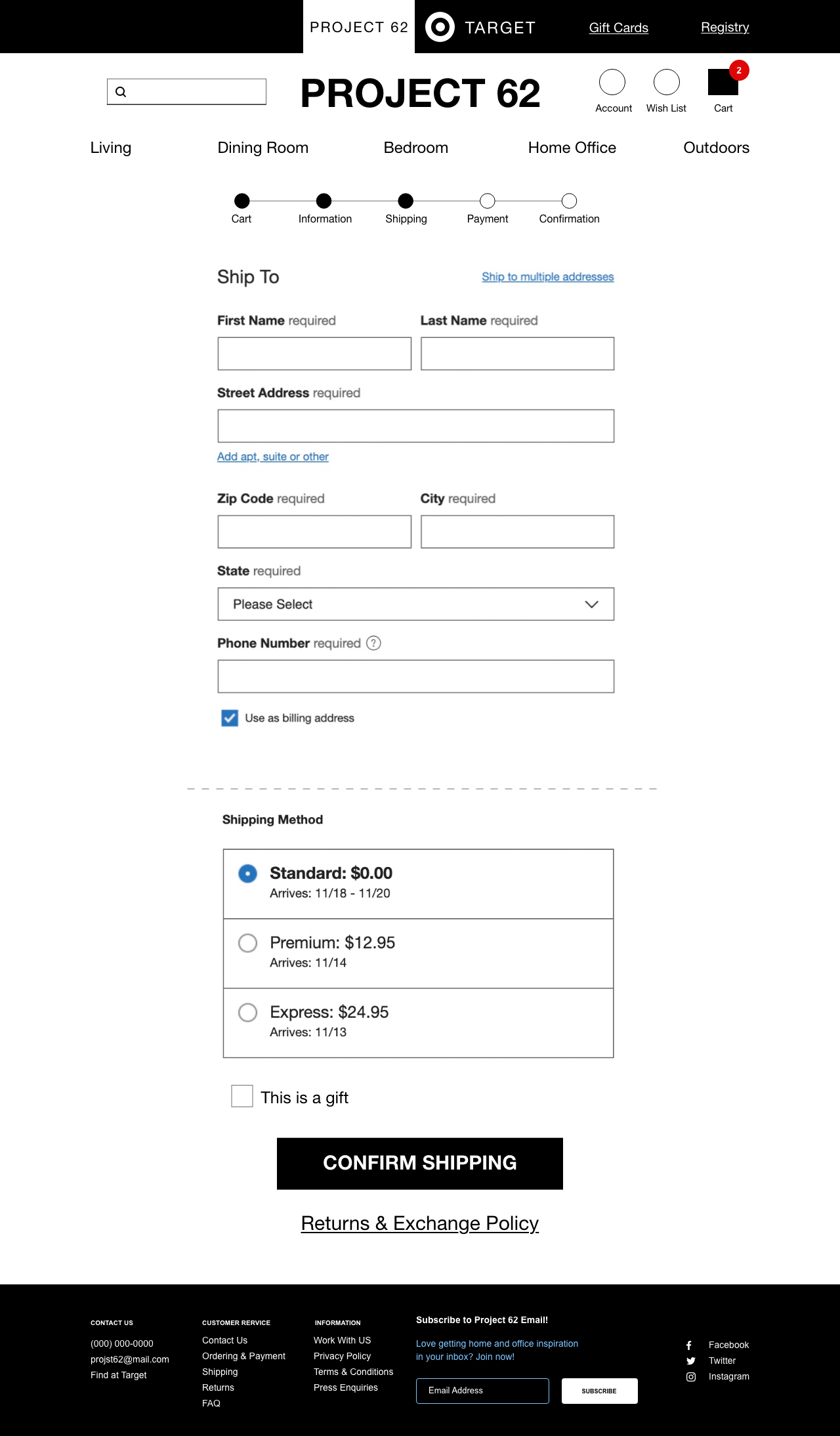 Before we decided on the name Oak+Thread, we were inspired by Targets brand Project 62. We wanted users to have access to Targets website from ours, and vice versa. The sketches I drew for the checkout flow was the deciding factor for how shoppers would be buying online. Testing low fidelity was not distracting now that there were not colors or fonts to look at yet. Please click on the images below to view the checkout flow.